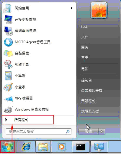 以系統管理員身分執行Internet Explorer,選擇左下角視窗圖案→所有程式